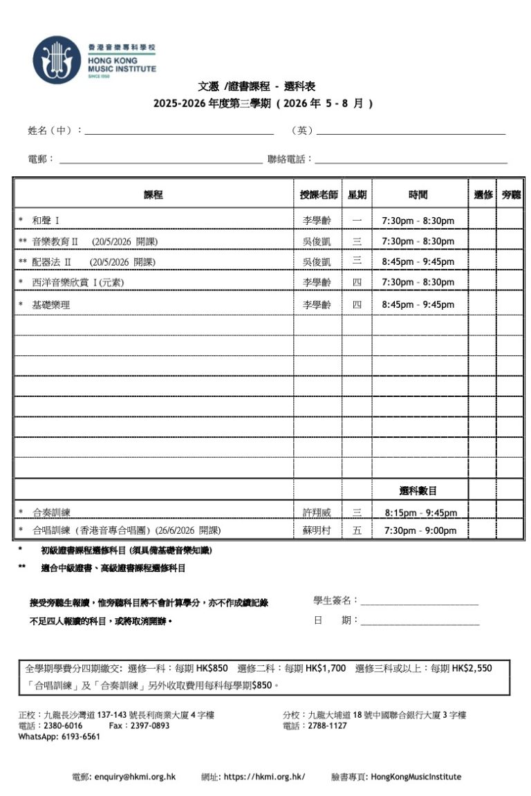 2025/26學年第三學期 – 合奏訓練