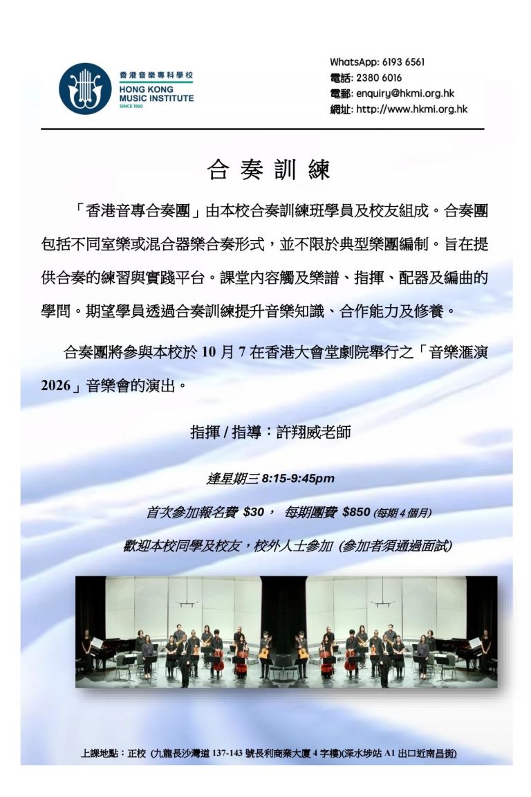 2026年4月 – 室樂團(訓練班)招生