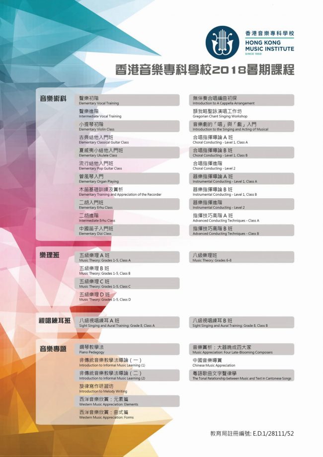 文憑/證書課程、聲樂證書課程及鋼琴教學證書課程招生簡章 最新消息By indesign2017 年 6 月 12 日文憑/證書課程、聲樂證書課程及鋼琴教學證書課程招生簡章 以下為香港音樂專科學校2017-2018年度文憑/證書…