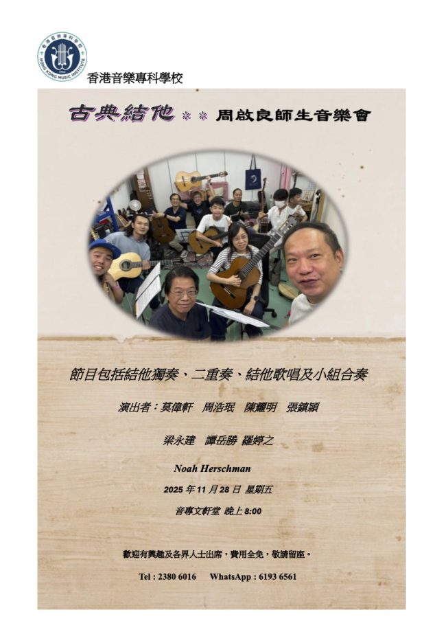 2025年11月28日 – 古典結他 – 周啟良師生音樂會 歡迎有興趣人士及各界音樂愛好者出席。費用全免 …