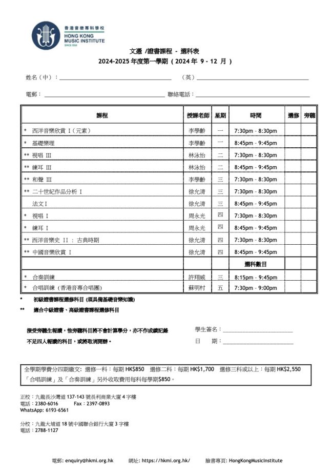 2024/25學年度 – 香港音專合唱團 最新消息, 課程By Rain2024 年 10 月 17 日2024/25學年 – 香港音專合唱團歡迎本校同學、校友及校外人士參加。 指揮 :蘇明村老師 詳情: 。第一學…