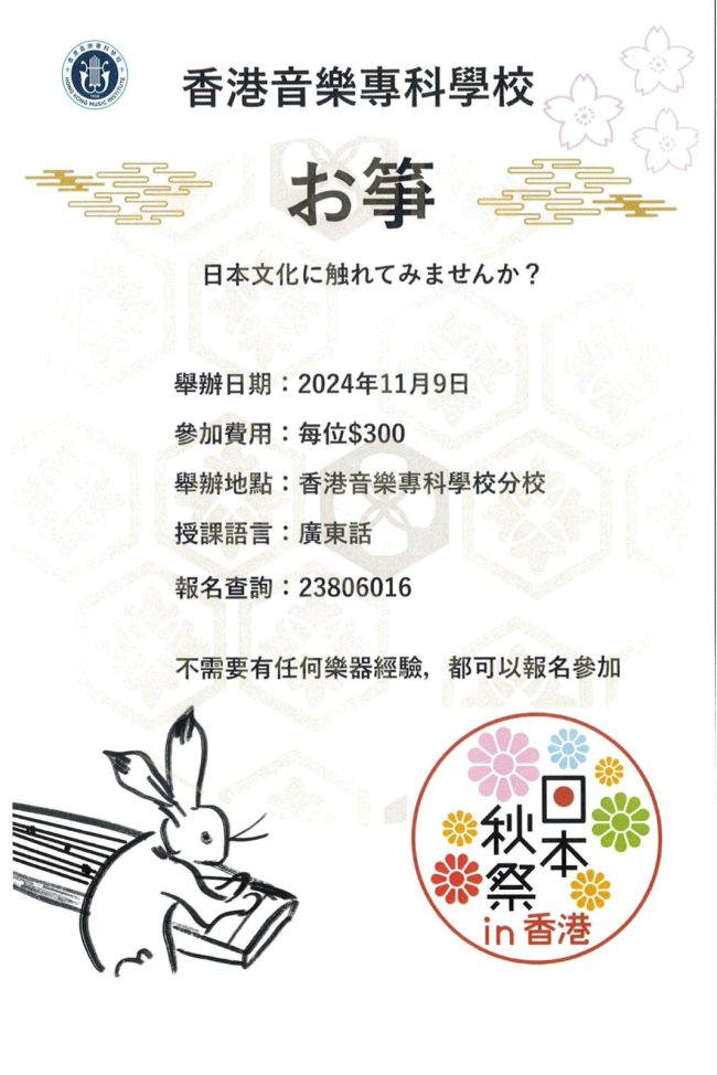 2024年短期課程 – 日本箏 最新消息, 短期課程, 課程By Rain2024 年 10 月 26 日2024年短期課程 – 日本箏現正接受報名!!【舉辦日期】 舉辦日期:2024年11月9日(星期六) …
