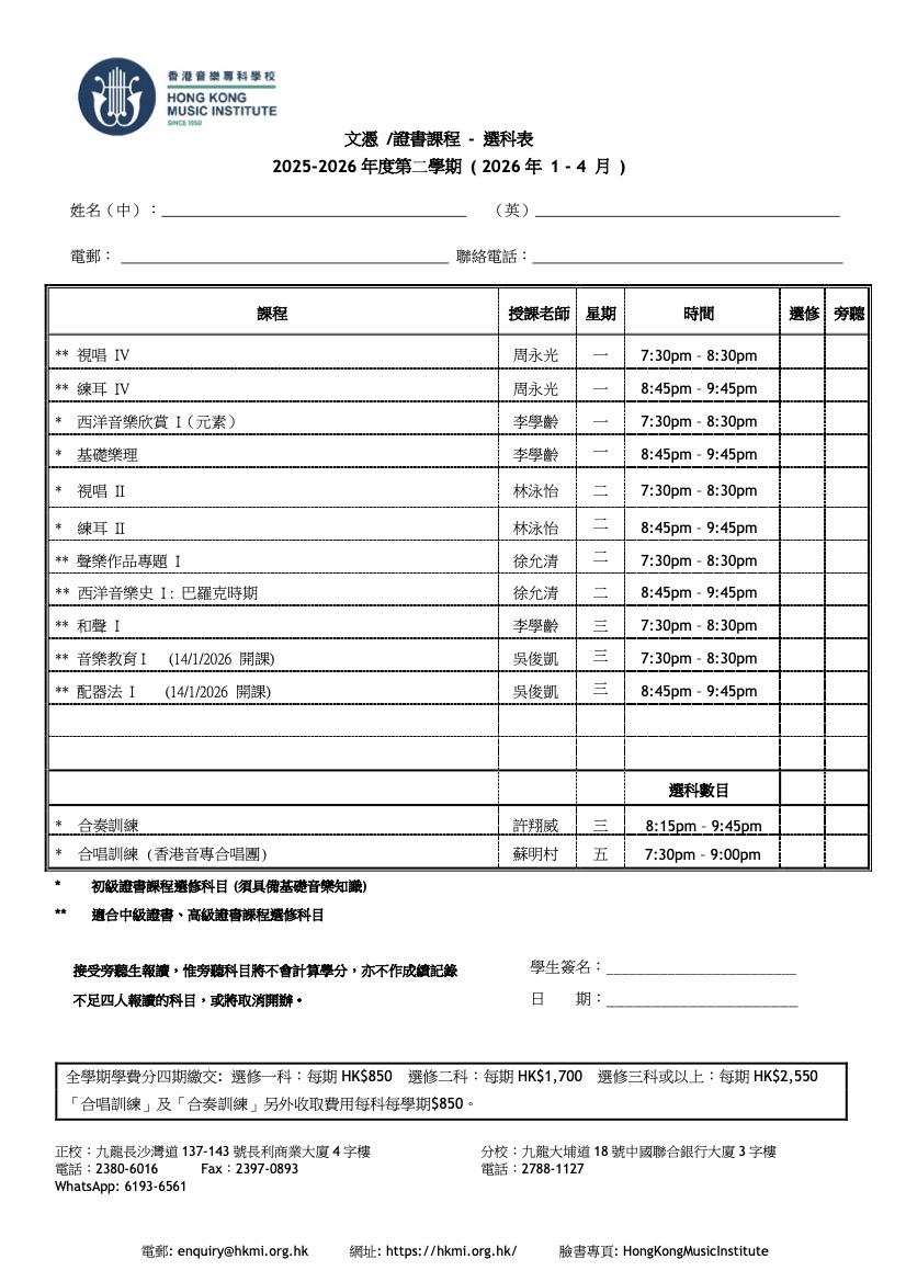 香港音樂專科學校 Hong Kong Music Institute (HKMI)